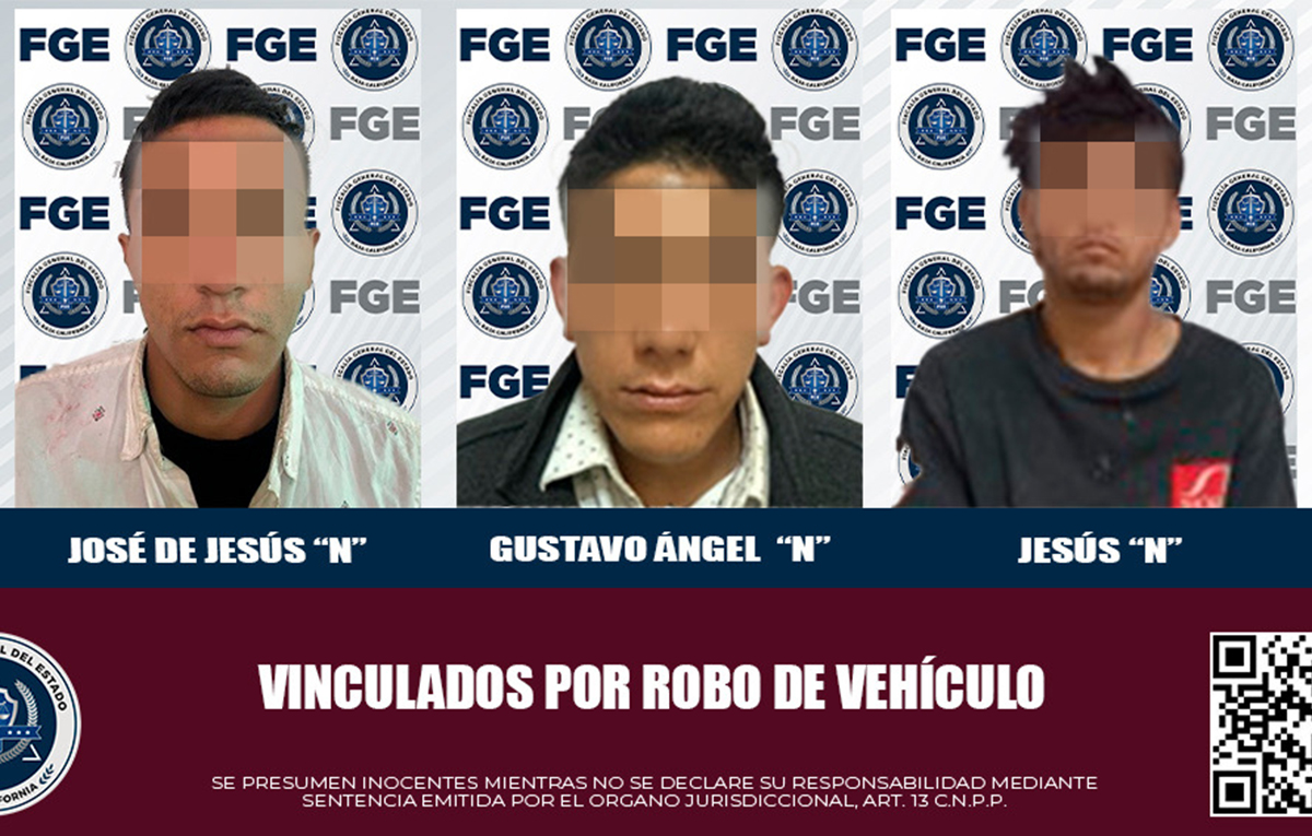 Tres personas, presuntamente relacionadas en el delito de robo de vehículos, fueron vinculadas a proceso con base a los elementos de prueba presentados por la Fiscalía Regional de Mexicali.