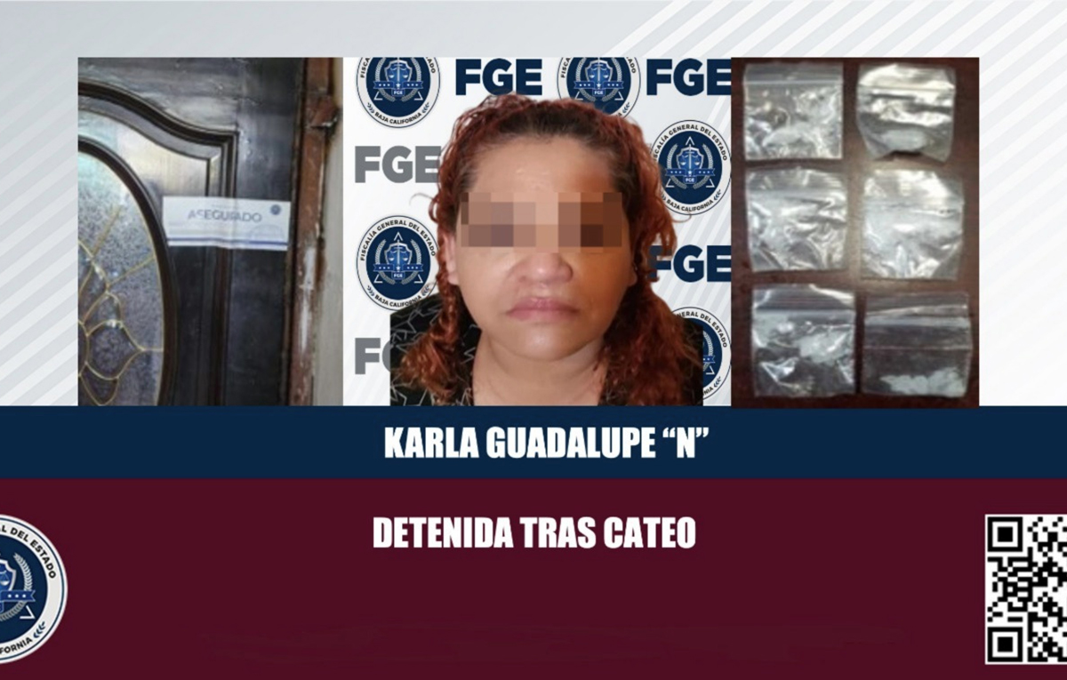 Elementos de la Fiscalía General del Estado (FGE), ejecutaron un cateo logrando el aseguramiento de Karla Guadalupe «N», presunta narcomenudista y el decomiso de varias dosis de droga.