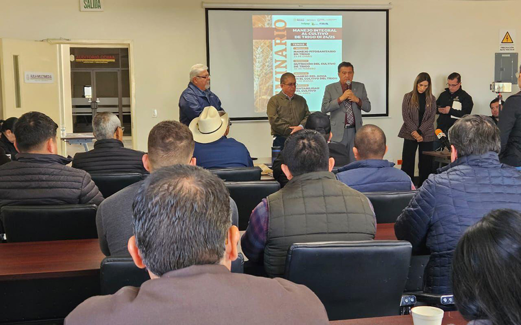Con el propósito de mejorar las prácticas en el manejo del trigo para contar con mayor calidad en la producción del grano, la Secretaría de Agricultura y Desarrollo Rural (SADERBC), llevó a cabo con éxito el inicio del seminario sobre el manejo integral del trigo en el Valle de Mexicali.