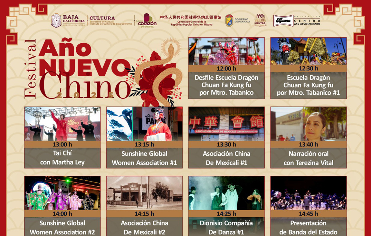 El Festival del Año Nuevo Chino 2025, dedicado a la Serpiente de Madera, será una celebración de tradiciones, arte y gastronomía que une a dos culturas, con una programación artística de más de 60 actividades de danza, música, teatro, exposiciones y conversatorios en Mexicali, Tijuana y Ensenada.