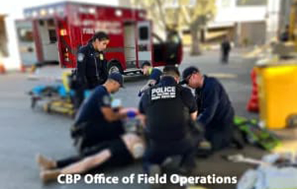 A CBP officer immediately began to administer cardiopulmonary resuscitation (CPR) after quickly assessing that the woman was unresponsive, blue in the face, and not breathing. CBP Emerg ency Medical Technicians (EMT) soon responded and provided additional medical care.