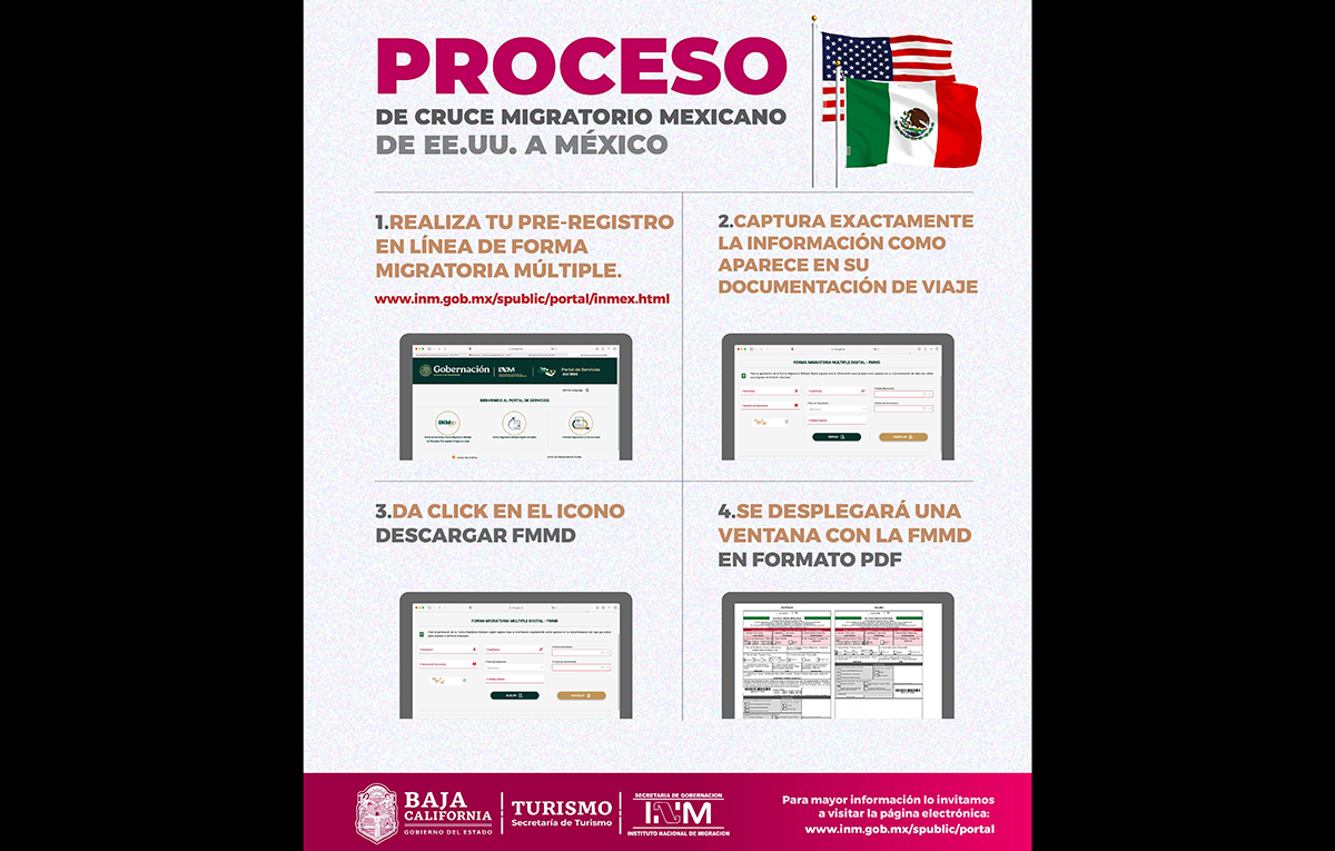 La Secretaría de Turismo de Baja California invita a las y los visitantes a completar este proceso de manera anticipada para garantizar un ingreso más ágil a México.
