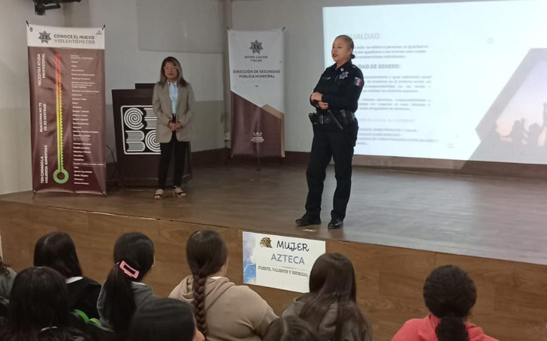 La Unidad de Proximidad Ciudadana de la Dirección de Seguridad Pública Municipal (DSPM) benefició a 210 alumnas del Colegio de Bachilleres de Baja California (Cobach), plantel Guadalupe Victoria, en la zona valle, con una plática sobre los derechos de la mujer y la violencia de género.