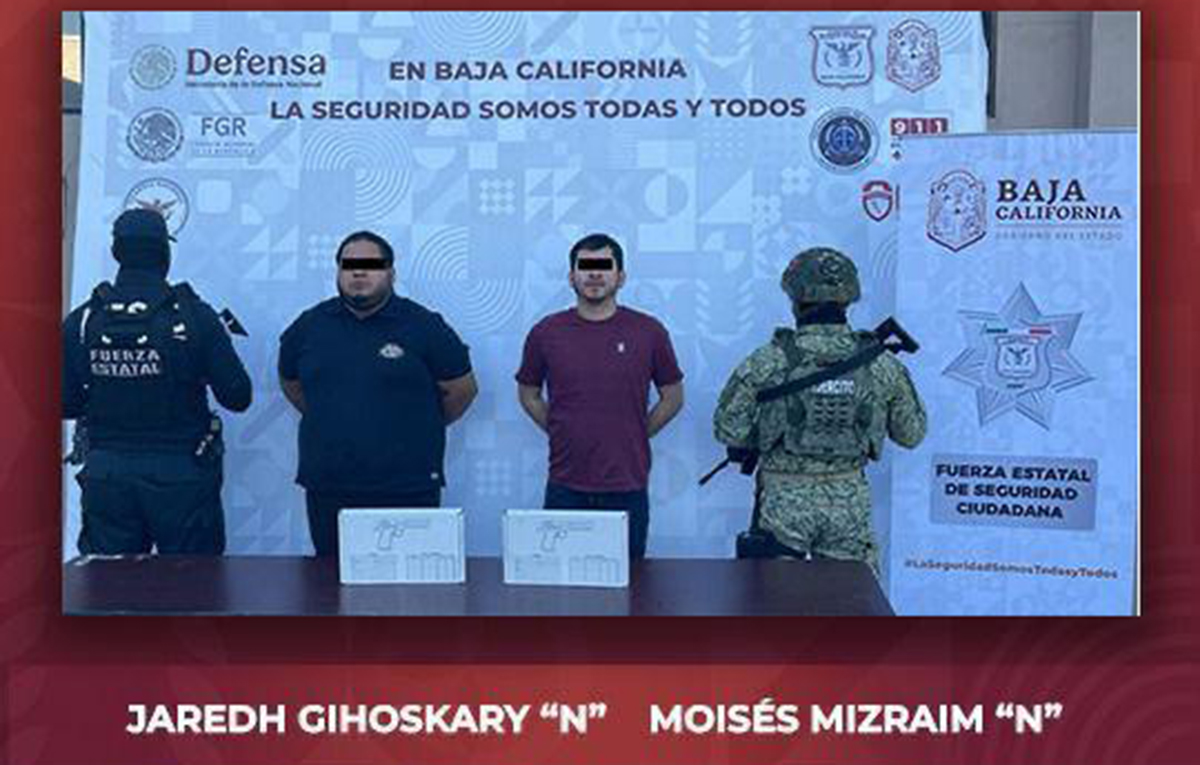 Dos presuntos generadores de violencia, identificados como Moisés Mizraim “N”, alias “El Moy” y/o “Don Gato”, así como Jaredh Gihoskary “N” alias “El Gordo”, fueron detenidos en la capital del Estado por agentes de la Fuerza Estatal de Seguridad Ciudadana (FESC) y elementos de la Secretaría de la Defensa Nacional (DEFENSA), luego de protagonizar una persecución policiaca por varias calles; durante el recorrido, el conductor del vehículo en fuga chocó contra una unidad patrulla propiedad de la Secretaría de Seguridad Ciudadana de Baja California (SSCBC).