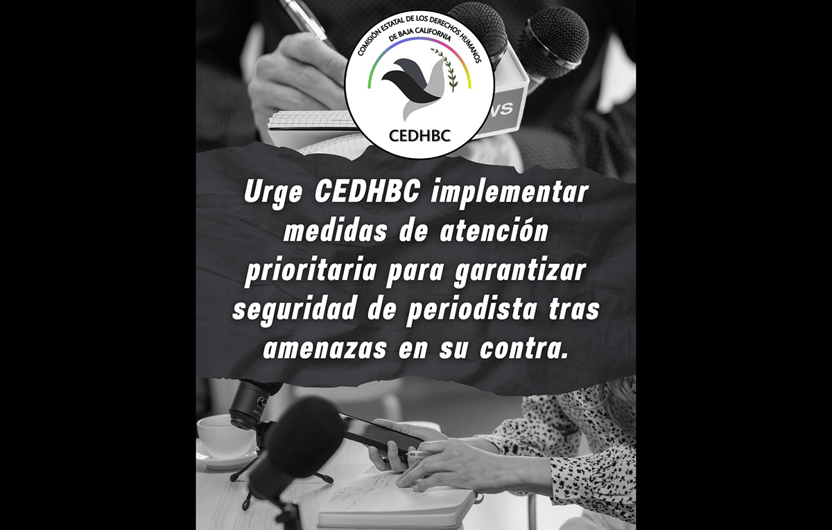 La Comisión Estatal de los Derechos Humanos de Baja California (CEDHBC) urgió a las autoridades a reforzar las medidas de atención prioritaria para la protección de una periodista del municipio de Playas de Rosarito.