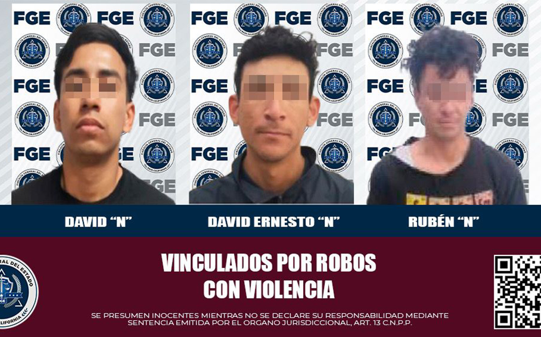 La Fiscalía Regional de Mexicali, a través de la Unidades de Investigación con Detenidos y Robos Poniente, obtuvo con base a los elementos de prueba la vinculación de tres personas relacionadas en robos con violencia.