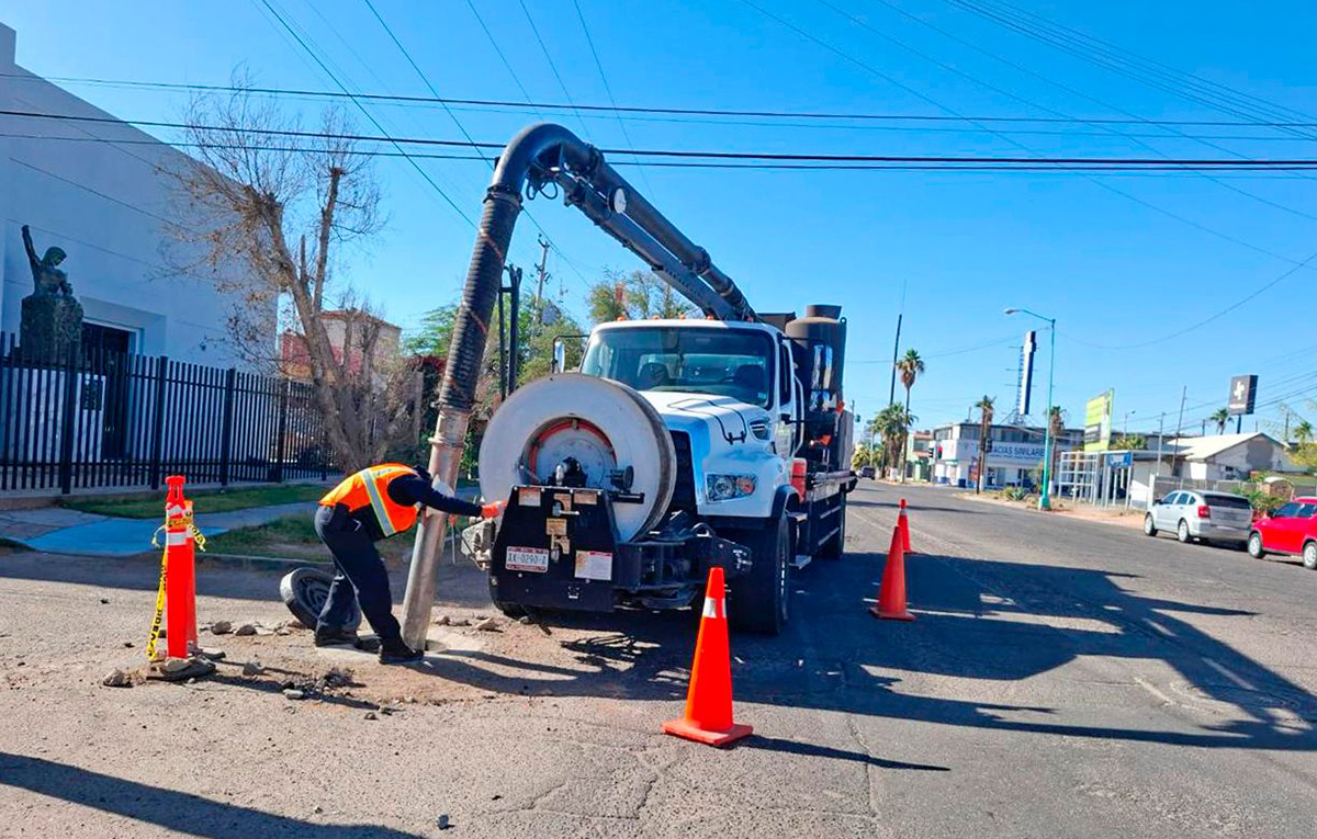 En el Valle de Mexicali, en la Colonia del Sol, las cuadrillas trabajaron en Calle 17 y Avenida José María Morelos, así como en la zona de Guadalupe Victoria (Km. 43), donde se ejecutaron maniobras de sondeo y limpieza de pozos, esenciales para evitar reboses y acumulación de aguas residuales.