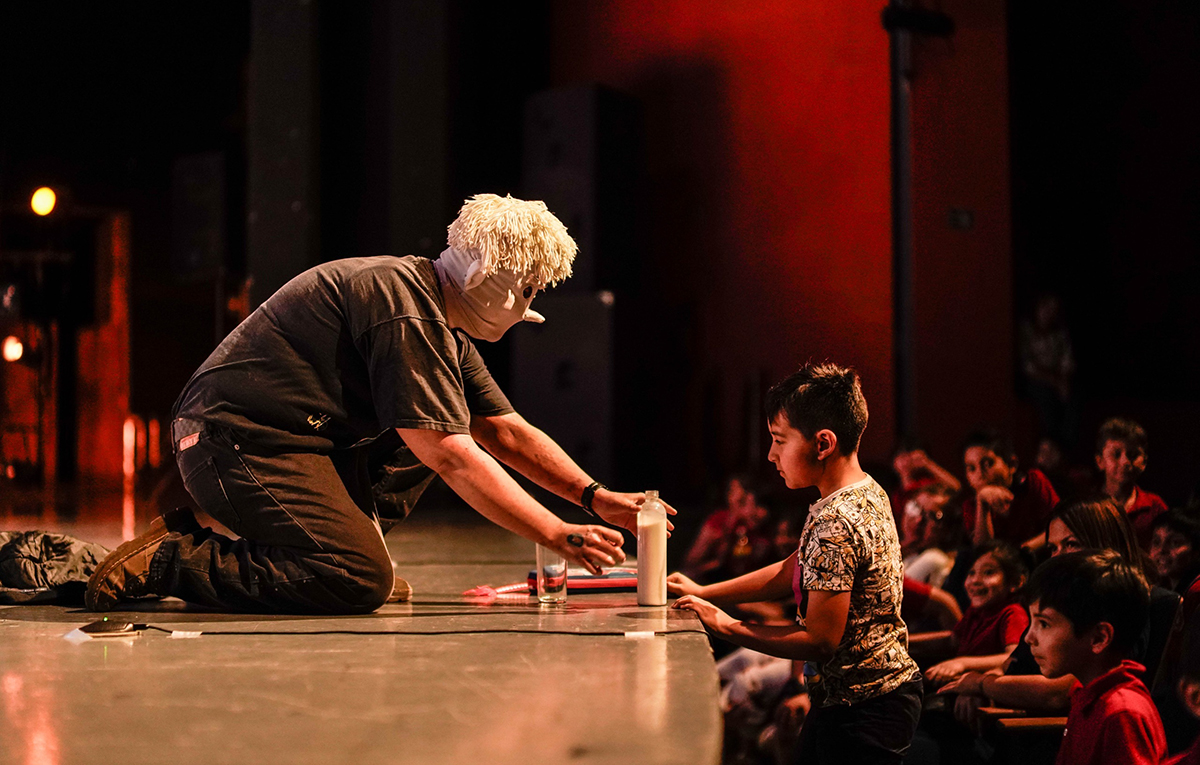 La puesta en escena “Leche” , bajo la dirección de Terezina Vital y la actuación de Alec Rodríguez, inauguró esta temporada, con un Teatro del Estado a su máxima capacidad, de niñas y niños las escuelas primarias Héroes, Francisco Sarabia, México y Pedro Pérez y Ramírez que fueron parte de esta experiencia cultural enriquecedora.
