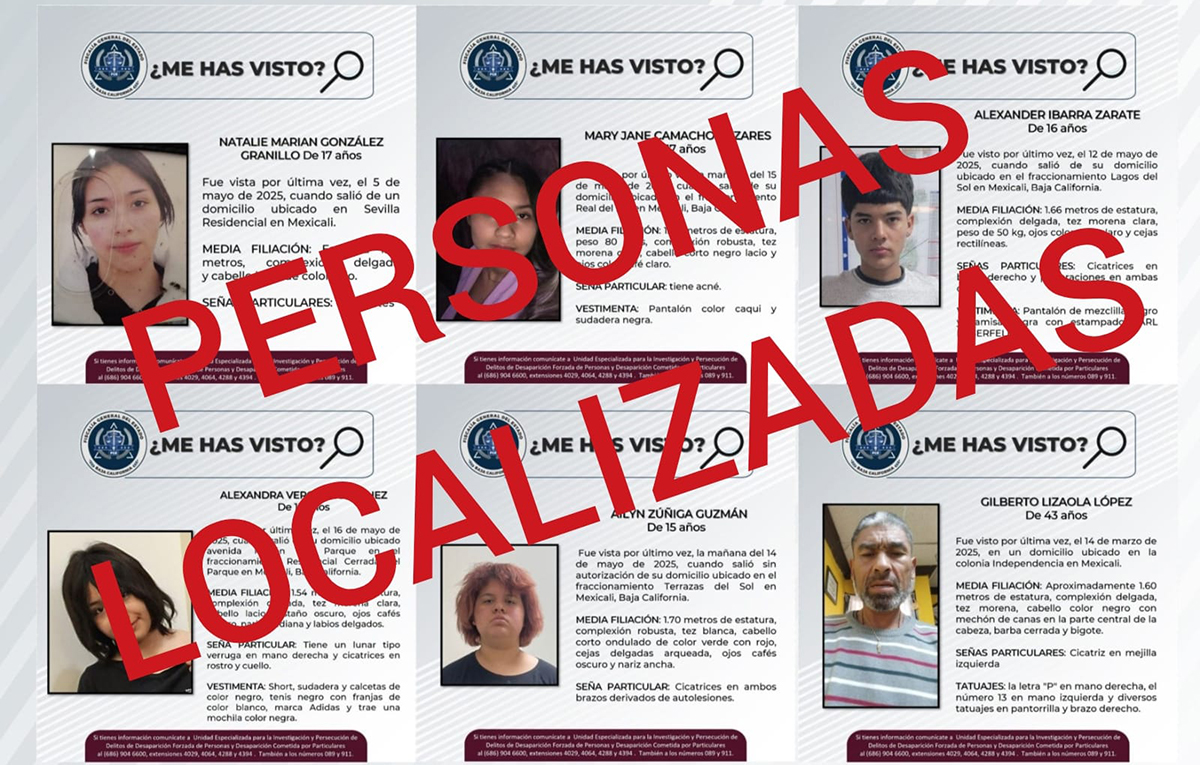 La Fiscalía General del Estado de Baja California, a través de la Unidad Especializada para la Investigación y Persecución de Delitos de Desaparición Forzada y Desaparición Cometida por Particulares, localizó a seis personas que contaban con reporte de búsqueda.