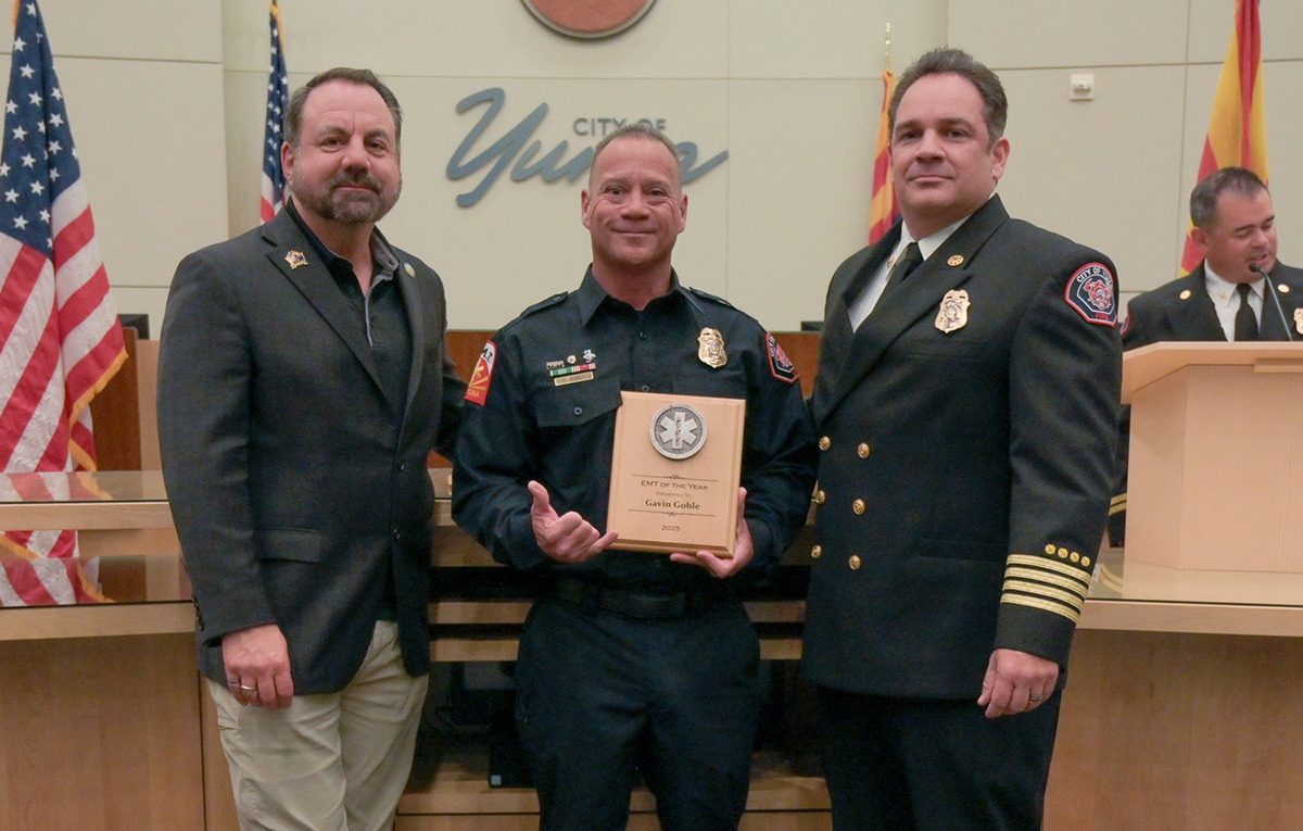 Yuma, AZ- The Yuma Fire Department kicked off 2025 EMS week with a celebration at the City of Yuma Council Chambers. YFD hosted the EMS week celebration and the event included a Proclamation read by City of Yuma Mayor Doug Nicholls and special recognition of several individuals, for achievements and service to our department and community. Representing the Yuma Fire Department for the presenting of these awards was Deputy Fire Chief John Louser, and Division Chief Daniel Espino. EMS Week is May 18th – 24th and this year’s theme is “We Care. For Everyone.”