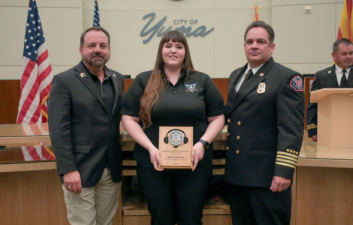 This year’s 911 Emergency Medical Dispatcher of the Year is Alyssa Solorio. Alyssa Solorio began her career as a 911 Emergency Dispatcher in June of 2015. She has always shown an interest in fulfilling the Yuma Fire Department and the Public Safety Communications Center’s mission. Over the years, this has evolved into a passion resulting in Alyssa being consistent with her Emergency Medical Dispatch call processing, averaging 48 seconds. She continues to be the calm and compassionate voice on the other end of that 911 call for help.