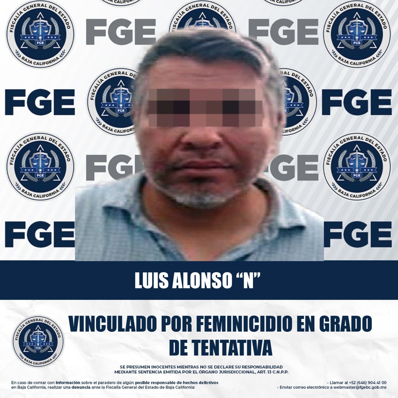 La Fiscalía Regional de Mexicali obtuvo la vinculación a proceso de Luis Alonso “N”, por su presunta responsabilidad en el delito de feminicidio en grado de tentativa, ocurrido el pasado 18 de octubre en la colonia Santo Niño.