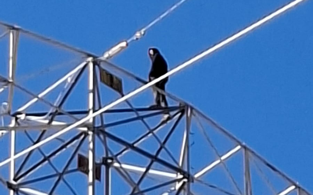 Al llegar los oficiales se percataron de una persona de sexo masculino que se encontraba arriba de una torre, en la parte más alta, motivo por el que se le dio indicaciones con el apoyo de un altavoz.