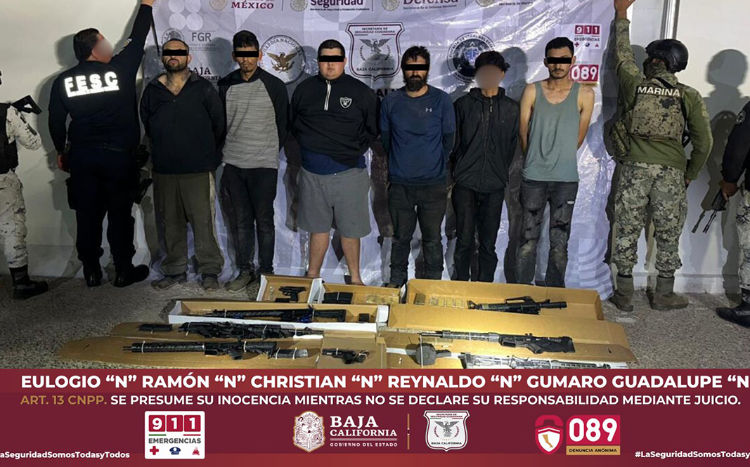 Seis presuntos delincuentes, entre ellos un menor de edad, fueron detenidos en el municipio de Playas de Rosarito, como resultado de un despliegue operativo que se activó por un reporte sobre detonaciones de arma de fuego. En la intervención conjunta participaron agentes de la Fuerza Estatal de Seguridad Ciudadana (FESC), elementos de la Secretaría de Marina (SEMAR), Guardia Nacional (GN), Secretaría de Seguridad y Protección Ciudadana (SSPC) Federal y de la Dirección de Seguridad Pública Municipal de Rosarito.