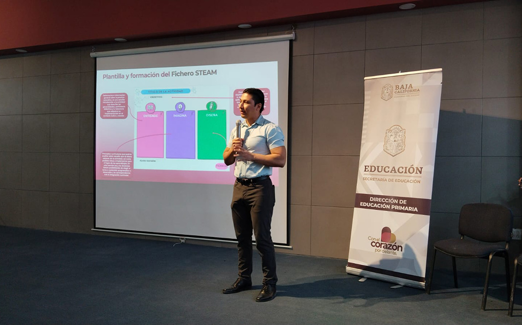 MEXICALI, B.C. Con el propósito de fortalecer las prácticas pedagógicas y promover una enseñanza innovadora, la Secretaría de Educación llevó a cabo el Segundo Taller de Trabajo con la Metodología STEAM, impartido por el coordinador estatal de esta estrategia educativa, Yataro Adolfo Loeza Mireles.