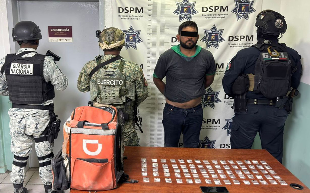 Como resultado de un operativo de prevención y vigilancia desplegado en las inmediaciones de la colonia Valle de Puebla, agentes de la Policía Municipal de Mexicali adscritos al Grupo de Reacción Inmediata (G.R.I), detuvieron a un hombre en posesión de múltiples dosis de metanfetamina que transportaba en una motocicleta con reporte de robo.