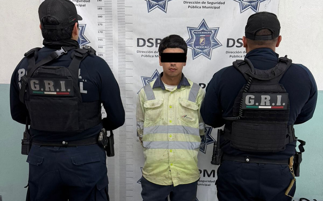Los hechos ocurrieron en el cruce de las calles Otilia Urrea Cota y Felipa Vázquez Viuda de Arellano, donde los elementos de la Policía Municipal de Mexicali que se encuentran adscritos al G.R.I llevaban a cabo labores de patrullaje para inhibir la incidencia en dicho sector.