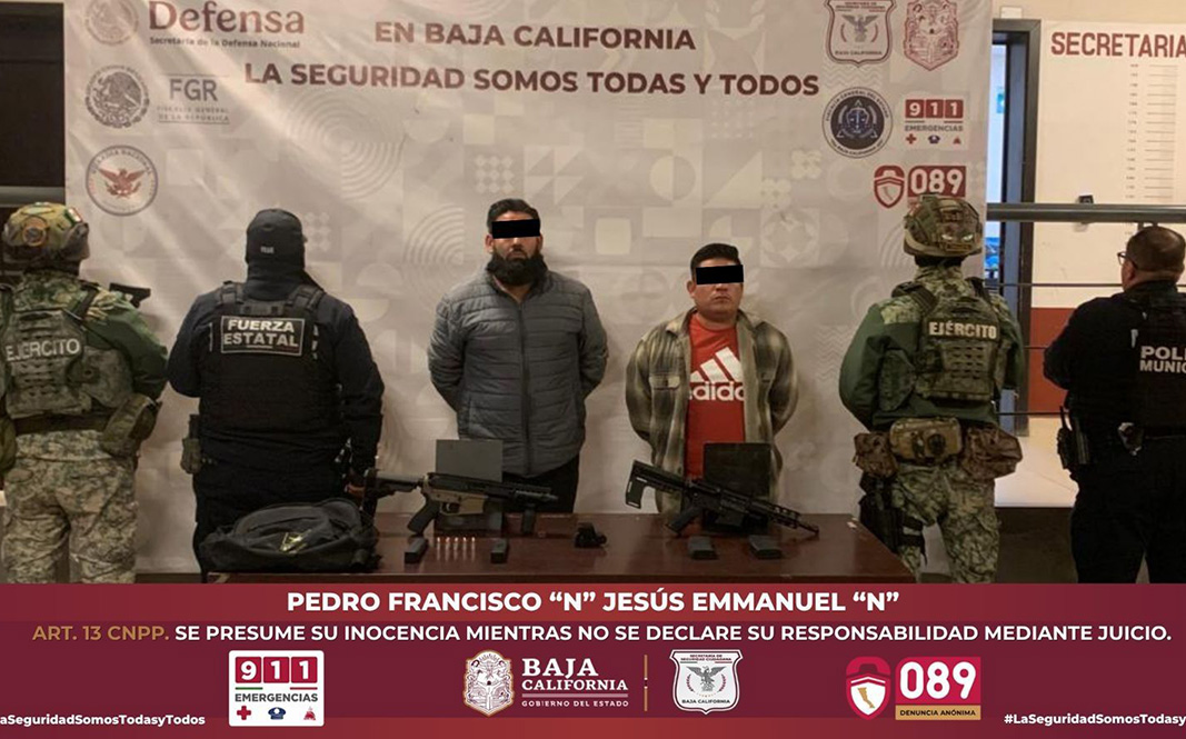 Tras el refuerzo estratégico operativo en el municipio de Playas de Rosarito, la Fuerza Estatal de Seguridad Ciudadana (FESC), detuvo en la colonia Independencia, a dos sujetos con armas largas; una de ellas abastecida con varios cartuchos listos para su uso inmediato.