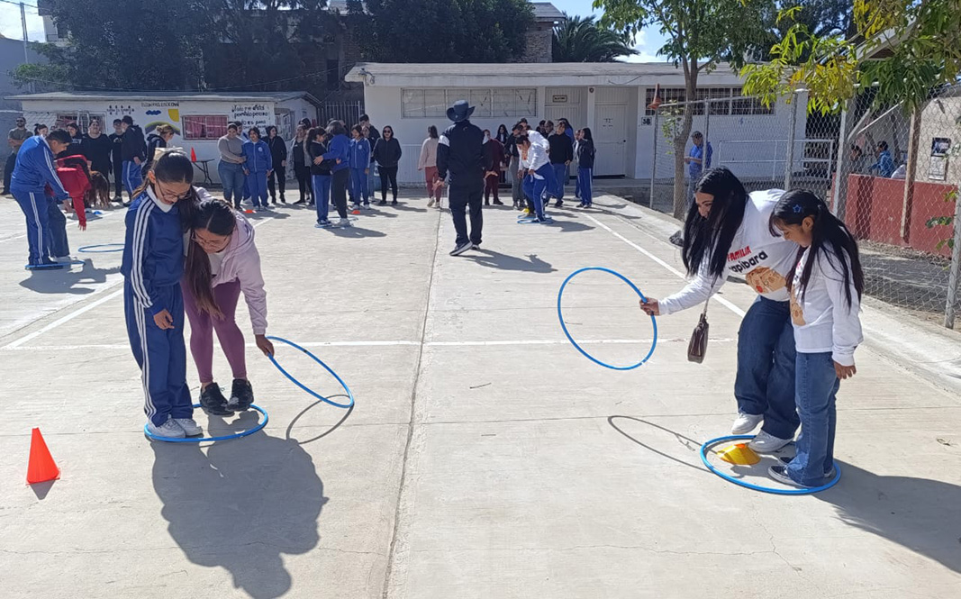 PLAYAS DE ROSARITO, B.C.- Con el objetivo de fortalecer los vínculos afectivos de la comunidad educativa, la Secretaría de Educación delegación Playas de Rosarito, realizó el evento recreativo de Matrogimnasia donde participaron alumnos y padres de familia de la Telesecundaria No.15 Frida Kahlo Calderón.