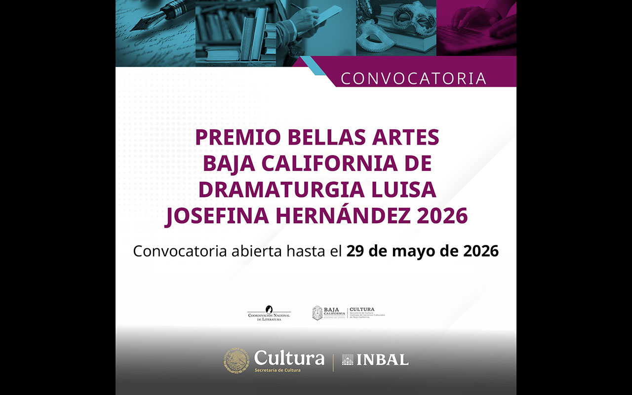 La Secretaría de Cultura del Gobierno de México y el Instituto Nacional de Bellas Artes y Literatura (INBAL), a través de la Coordinación Nacional de Literatura, en colaboración con el Gobierno del Estado de Baja California, mediante su Secretaría de Cultura, convocan al Premio Bellas Artes Baja California de Dramaturgia Luisa Josefina Hernández 2026.